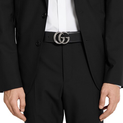 GG Marmont belts include a style with a scaled buckle in silver and ruthenium-toned finish for a unique touch. This wide belt is stated in a smooth leather and defined by a scaled Double G buckle.