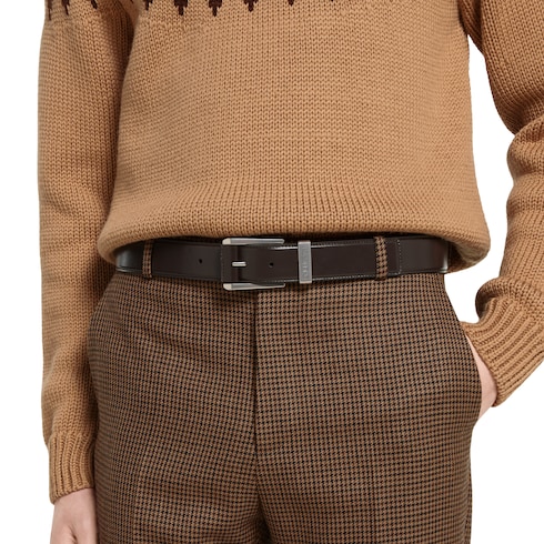 The signature combination of sophisticated leather in neutral shades and a rectangular buckle effortlessly completes business and formal looks. This wide belt is stated in a smooth leather and features a squared buckle with Gucci engraving on a metal loop.