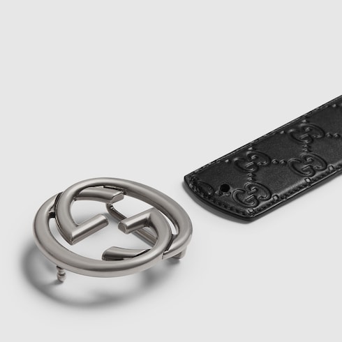 - Black embossed GG leather on one side, black leather on the other