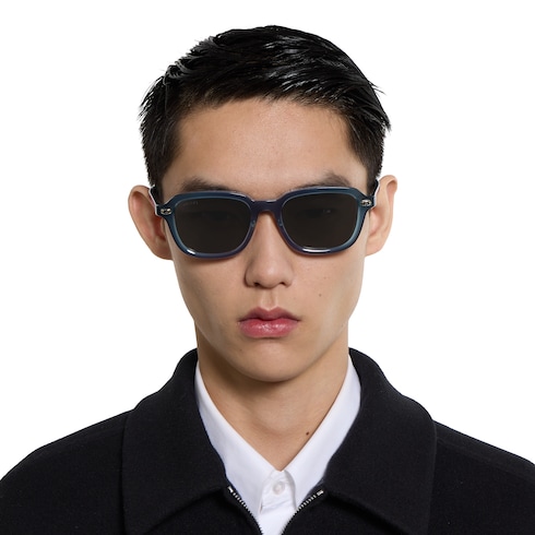 - Shiny transparent blue grey acetate frames with Interlocking G