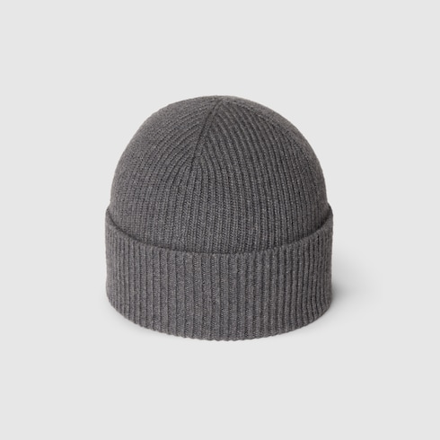 The soft and silk accessories collection animates House codes through sophisticated trimmings, logo patches and subtle embroideries. This hat is stated in grey cashmere with a Double G leather patch.