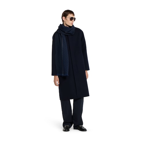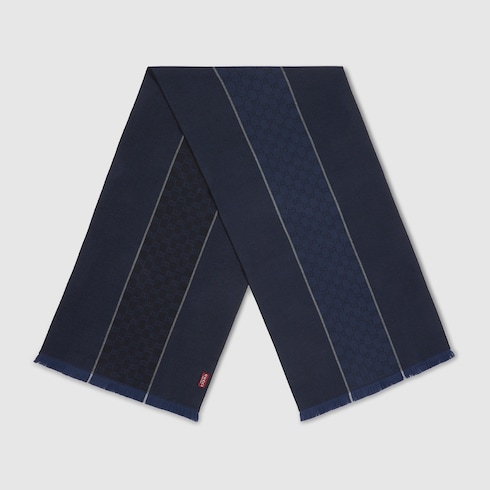 The Cruise 2026 men's soft accessories collection is a journey through legacy and modernity rooted in Gucci's archives. This soft scarf has been made from a GG wool jacquard and completed with a fringe trim.