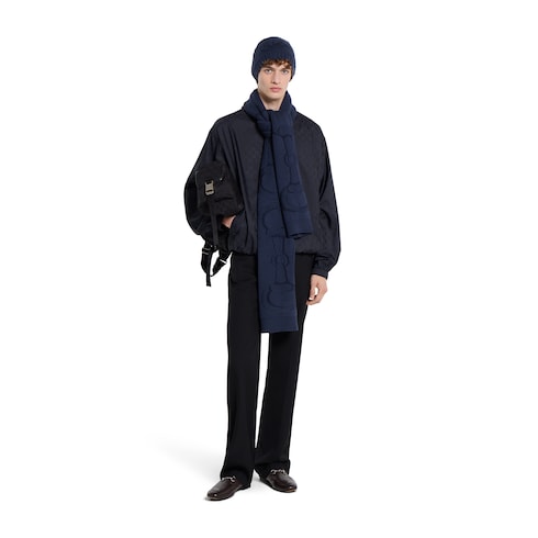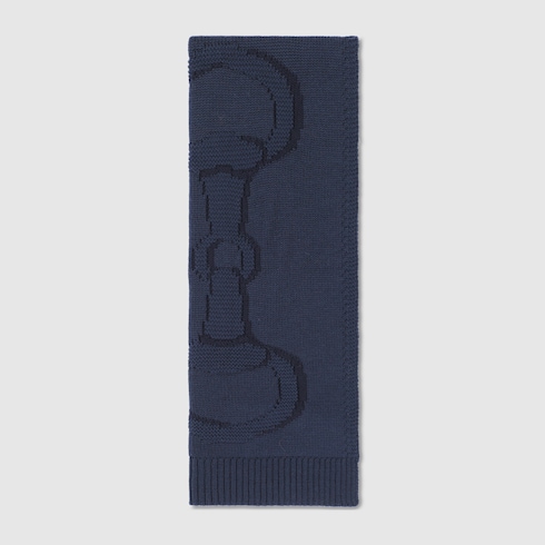 The House's silk accessories collection continues to reinterpret emblematic motifs, from the GG, Web, Flora, bamboo, Horsebit and equestrian inspirations, in sumptuous materials, intricate craftsmanship, and fresh hues. Knit from a soft wool, this scarf is defined by a Horsebit knit detail.