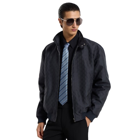 - Light blue and grey diagonal striped Horsebit silk jacquard