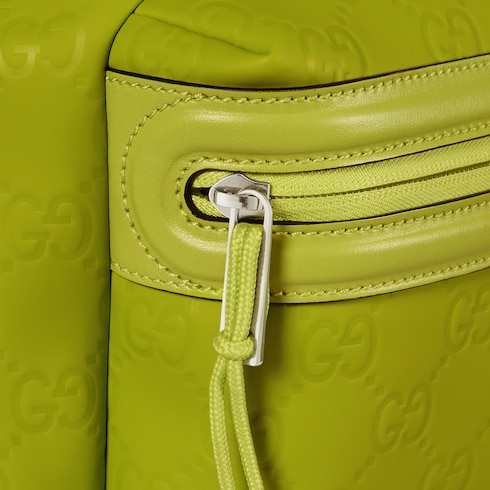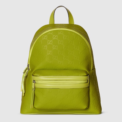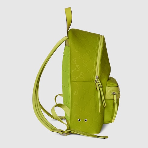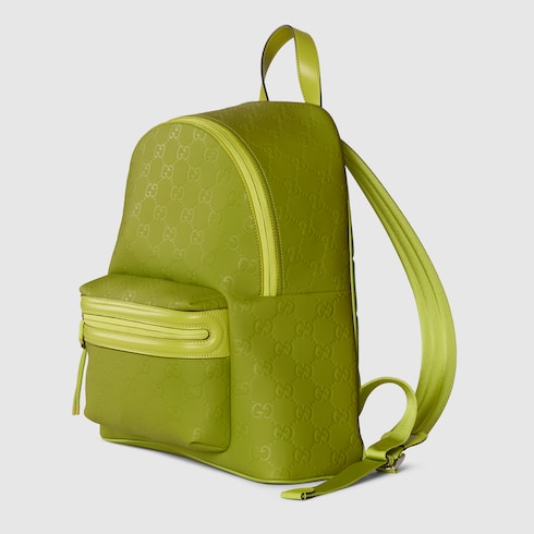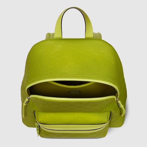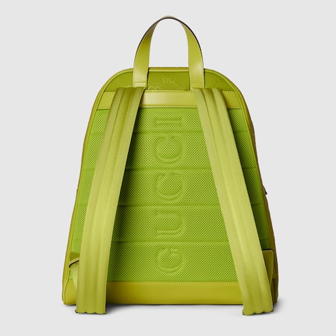 The name Gucci Edge captures the energy of streamlined silhouettes as innovative material meets lightweight adaptability, marked by the subtle GG monogram. This backpack is stated in a GG matte rubber fabric and reveals a Gucci logo detail across the padded mesh back.