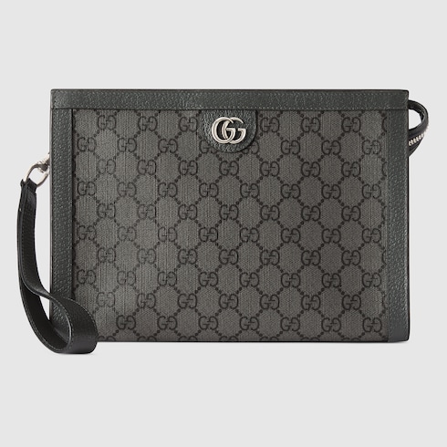 Gucci heritage meets contemporary design with the continuation of Ophidia. Crafted in a grey and black GG Supreme canvas, this pouch silhouette is defined by the palladium-toned Double G hardware.