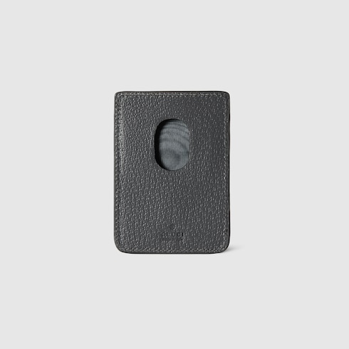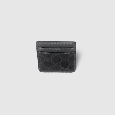 Slim and compact small leather goods from the latest collections highlight new shades sporting the GG logo with a bicolour design. This magnetic card case with two slots appears in a grey and black GG Supreme canvas, complete with a smooth grey leather trim and tonal GG hardware.