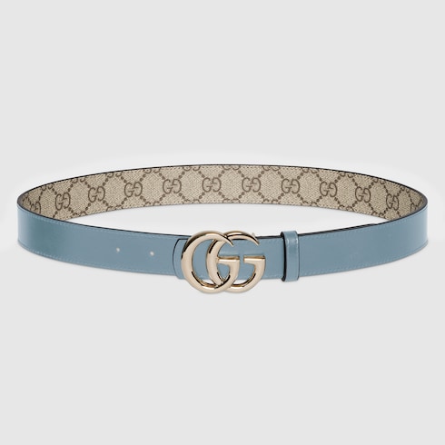 - Beige and dark brown GG Supreme on one side, light blue leather on the other