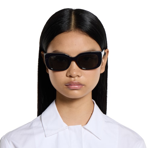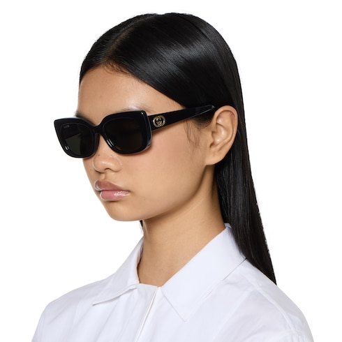 The Pre-Fall 2025 eyewear collection successfully combines the coveted silhouettes of bygone decades with a contemporary logo feel. Here, this black acetate frame pairs with an Interlocking G detail.