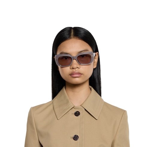 The Pre-Fall 2025 eyewear collection successfully combines the coveted silhouettes of bygone decades with a contemporary logo feel. Here, this pearly brown and black acetate frame pairs with an Interlocking G detail.