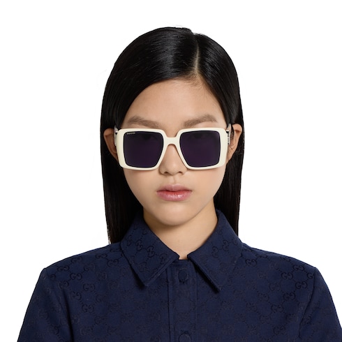 The Pre-Fall 2024 eyewear collection successfully combines the coveted silhouettes of bygone decades with a contemporary logo feel. Here, a shiny off white injection frame pairs with an Interlocking G motif.