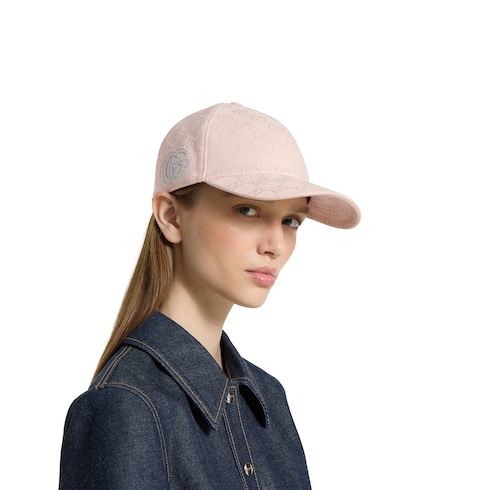 In the Fall Winter 2025 collection, women's soft accessories include GG canvas styles. This tonal GG cotton canvas jacquard baseball cap brings a subtle twist to the signature motif, defined by a contrasting Double G embroidery.