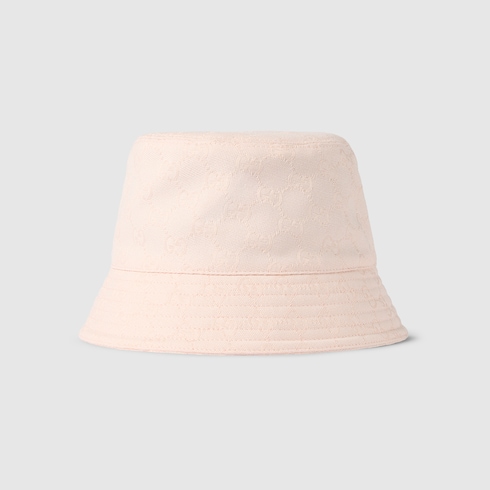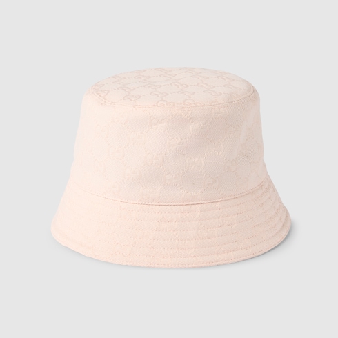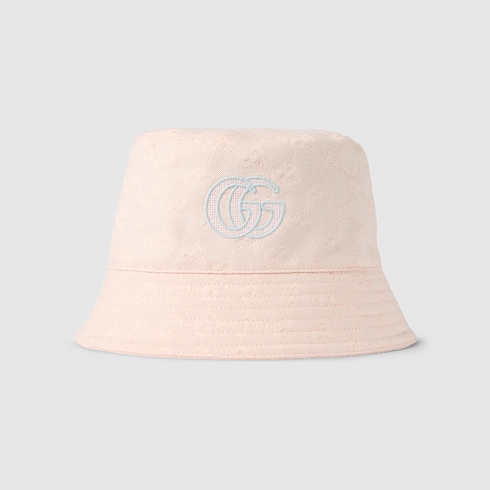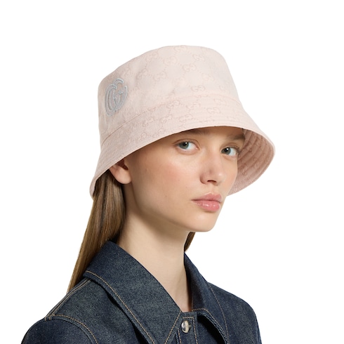 In the Fall Winter 2025 collection, women's soft accessories include GG canvas styles. This tonal GG cotton canvas jacquard bucket hat brings a subtle twist to the signature motif, defined by a contrasting Double G embroidery.