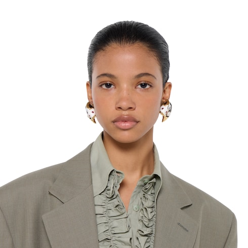 The House's fashion jewelry collection continues to reinterpret signature themes including animal motifs, like these carp-shaped earrings with enamel details, through sumptuous materials, intricate craftsmanship, and a refined touch.