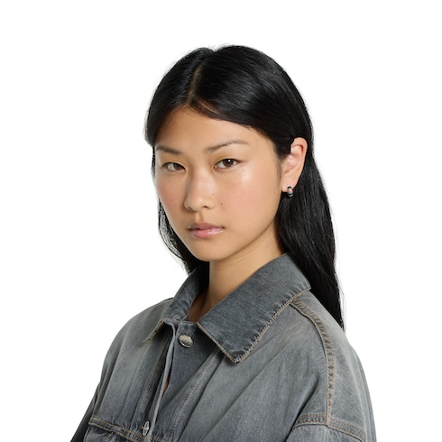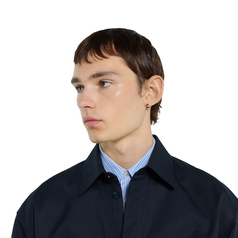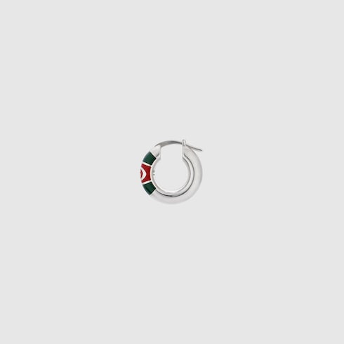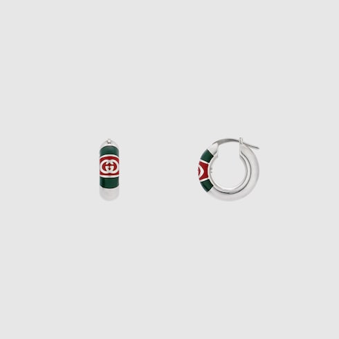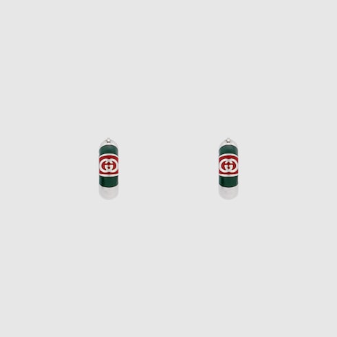 The House's silver jewelry collection continues to reinterpret emblematic motifs in sumptuous materials, intricate craftsmanship, and fresh hues, such as these earrings with a cylindrical Web detail.