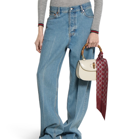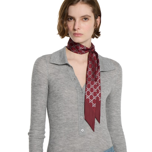 The Pre-Fall 2025 collection presents the GG motif across a wide selection of silk accessories that can be layered. Crafted from a silk twill, this ribbon is completed with an allover GG print.