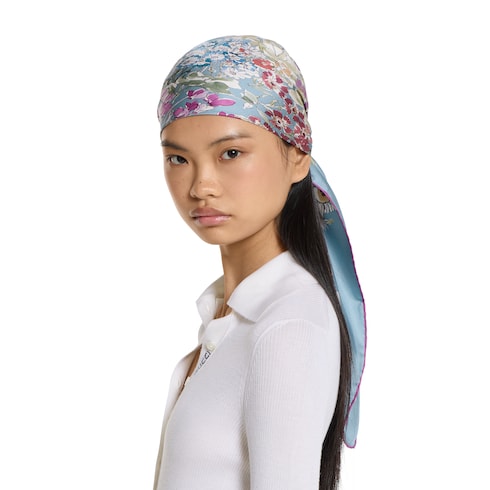 Presented as part of the Pre-Fall 2025 collection, this carré has been crafted from a silk twill and features an allover floral print. The vibrant motif represents a bouquet of flowers, creating a watercolor effect to match the tonalities of the collection.