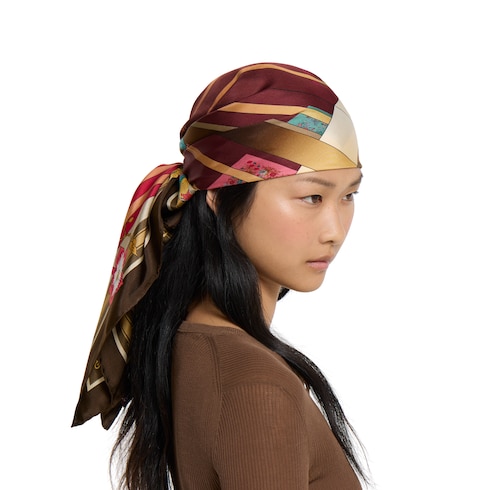 The House's silk accessories collection continues to feature sumptuous materials, intricate craftsmanship, and imaginative motifs, introducing this Gucci Boutique print.