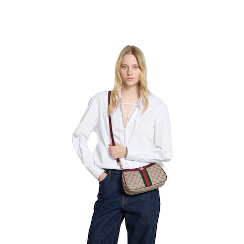 The Ophidia collection evokes the House’s heritage with the signature Web stripe and Double G emblem in light gold-toned finish. The styles are crafted from soft GG Monogram coated fabric, featuring green cotton lining inside.