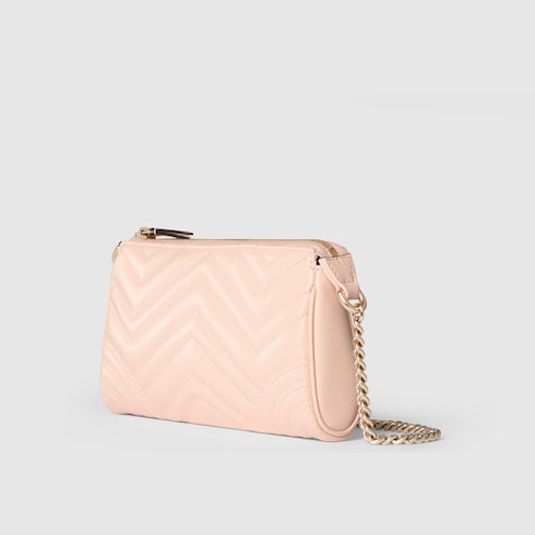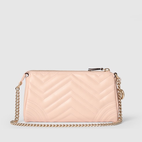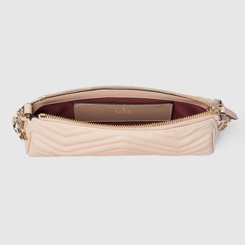 In the Fall Winter 2025 collection, part of the GG Marmont collection, this small shoulder bag features a soft, structured silhouette and the signature Double G as a zip puller. A faceted chain strap and gold-toned hardware complete the design, while a flat leather pocket define the interior.