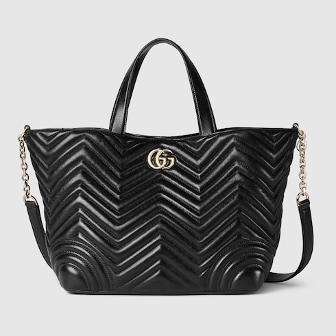 Gucci Betty adds a touch of spontaneity to refined design, which can change from a structured tote to soft-shaped bucket. The style is completed with top handles and a chain shoulder strap, offering versatile styling options.