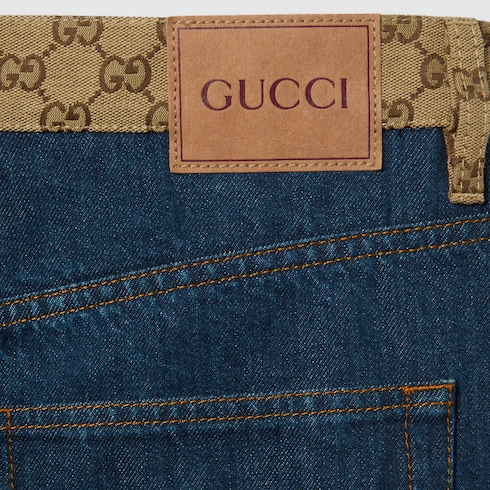 The Cruise 2025 collection introduces a fresh take on denim, with subtle details that elevate everyday looks. These boyfriend fit jeans have been made from a washed certified denim and enriched with a GG canvas waistband.
