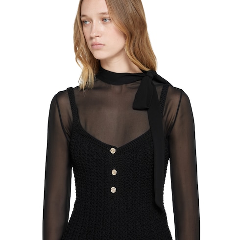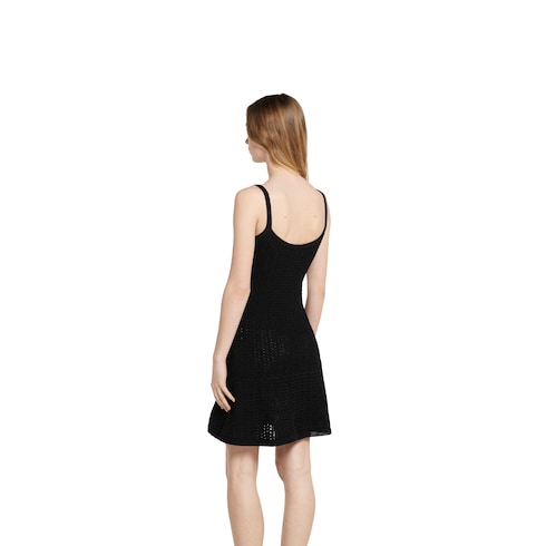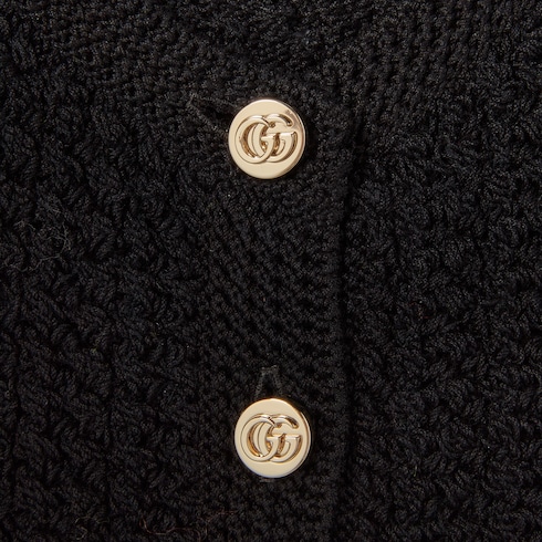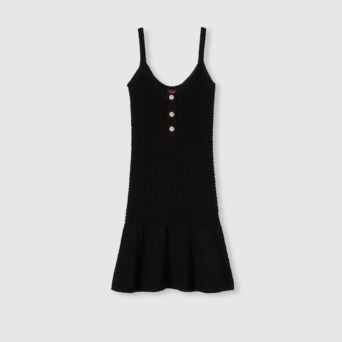 A monochrome palette with subtle details, such as embroideries or logo hardware, transitions the wardrobe from day to night in a selection of pieces from the Pre-Fall 2025 collection. This cotton cable knit dress is defined by a feminine silhouette with gold-toned Double G buttons to catch the new-season light.