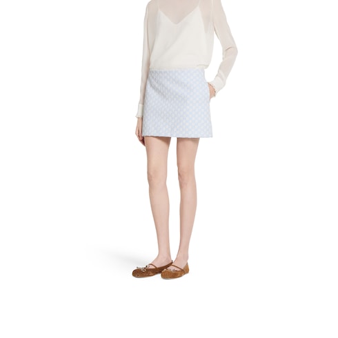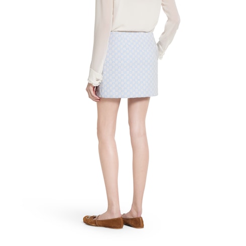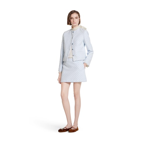 The Pre-Fall 2025 selections spotlight essential silhouettes with emblematic details from daywear to eveningwear. This mini skirt is presented in GG bouclé cotton, paying homage to founder Guccio Gucci's instantly-recognizable monogram.