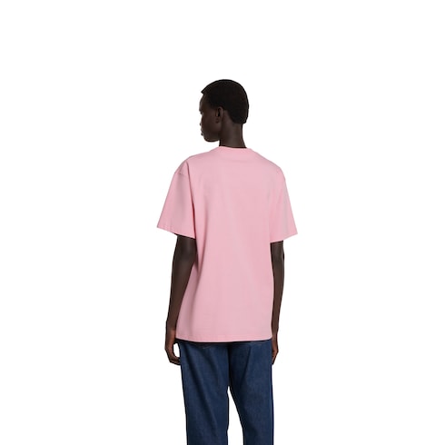 For the Pre-fall 2025 collection, everyday pieces are elevated with prints or embroideries for a casual feel. This T-shirt features a Gucci vintage logo print.