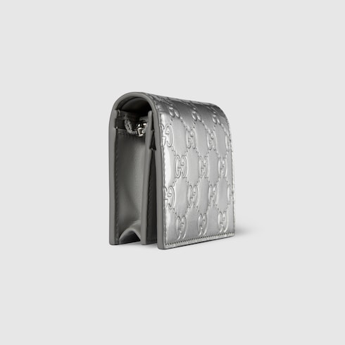 The GG Emblem collection reinterprets the House’s history of elegance and craftsmanship, introducing metallic styles which impart new light on the signature GG motif. This wallet is crafted in silver patent GG leather for a sparkling touch.