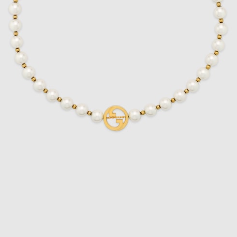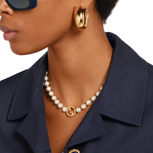 รายละเอียดจี้ Round Interlocking G มาพร้อมกับสายโซ่เม็ดกลมมุกแบบใหม่เพื่อเสริมความโดดเด่นให้สร้อยคอเส้นนี้ ดีไซน์สร้อยข้อมือและสร้อยคอยาวที่เข้าชุดกันยังมาพร้อมที่ปิดแบบเลื่อนพร้อมปุ่มกดใช้ง่ายแบบเดียวกัน