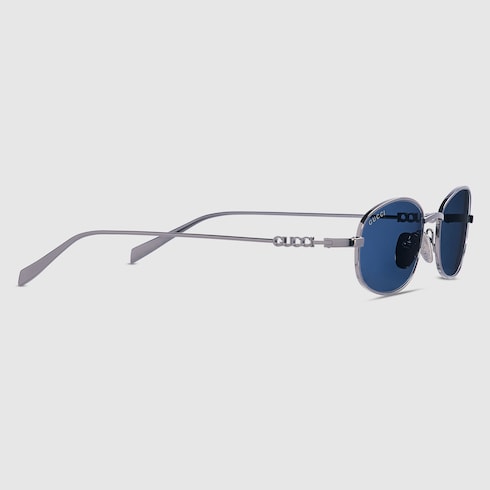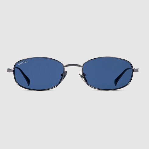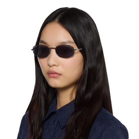 - ขาแว่นโลหะรูทีเนียมสีเข้มแบบเงาพร้อมสัญลักษณ์ Gucci คัตเอาท์