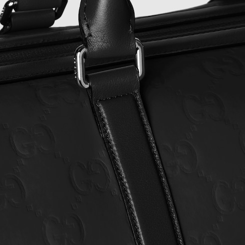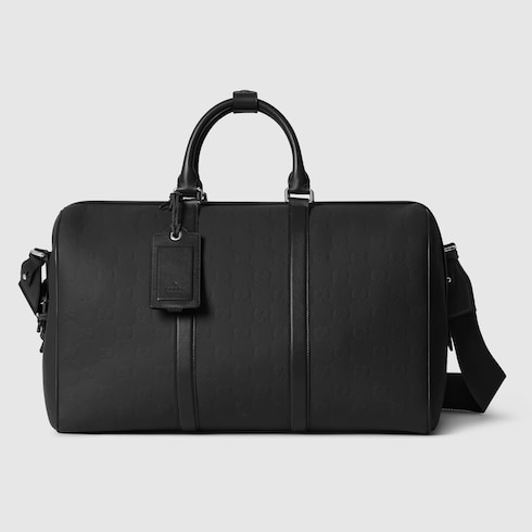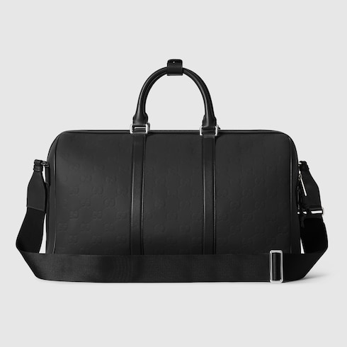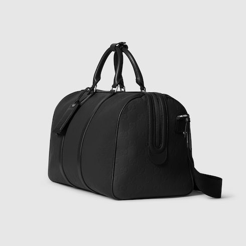 ชื่อ Gucci Edge สื่อถึงพลังแห่งรูปทรงอันเรียบหรู เมื่อนวัตกรรมวัสดุผสานเข้ากับความเบาและความยืดหยุ่นอย่างลงตัว พร้อมแต่งแต้มด้วยลวดลาย GG Monogram อันประณีต กระเป๋าดัฟเฟิลขนาดกลางใบนี้นำเสนอด้วยผ้ายาง GG แบบแมตต์และมาพร้อมกับแท็ก ID Liftboy หนังสามารถถอดออกได้