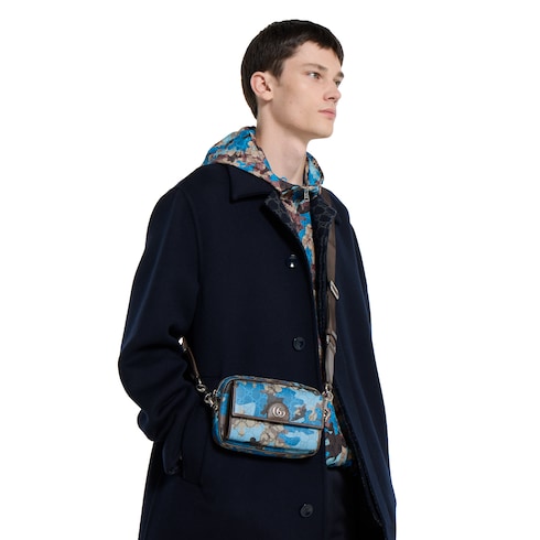 - ผ้าเคลือบ GG Monogram ลายหินอ่อนลายพรางสีน้ำเงินและสีฟ้า
