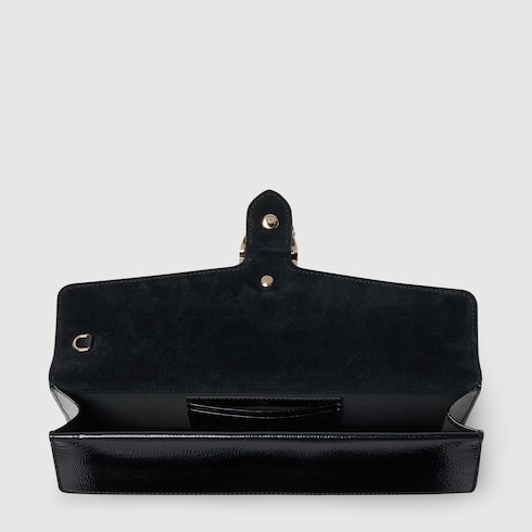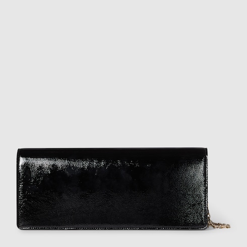 กระเป๋าคลัตช์ใบนี้นำเสนอด้วยหนังแก้ว โดดเด่นด้วยรูปทรงอันเรียบหรูและสัมผัสอันประณีต สายโซ่โทนสีทองอ่อนเพิ่มสัมผัสอันเปล่งประกายและสามารถเสริมสไตล์ได้หลากหลายลุคจากวันจรดค่ำ