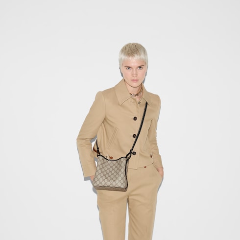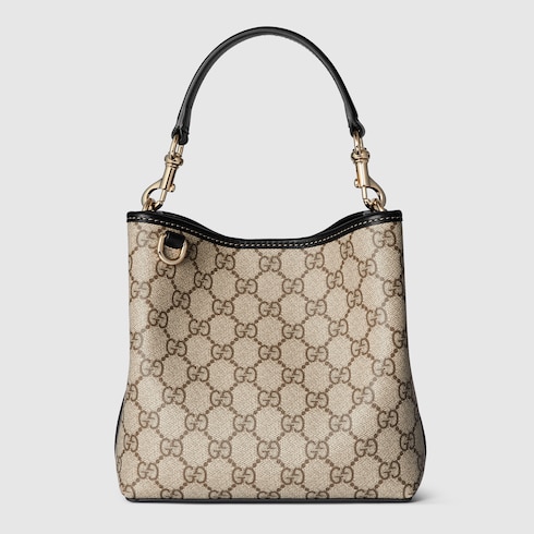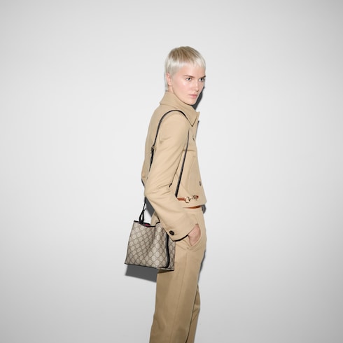 คอลเล็กชั่น GG Emblem โฉมใหม่ตีความประวัติศาสตร์แห่งความสง่างามและงานฝีมือของแบรนด์ขึ้นใหม่ กระเป๋าบักเก็ตใบนี้โดดเด่นด้วยดีไซน์ใช้งานสะดวกพร้อมกับช่องกระเป๋าด้านใน
