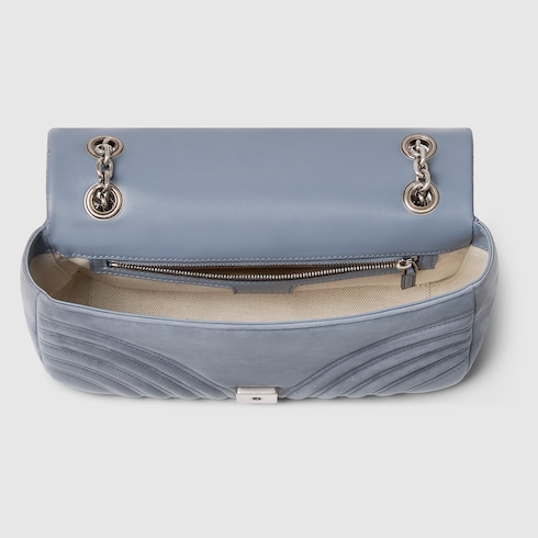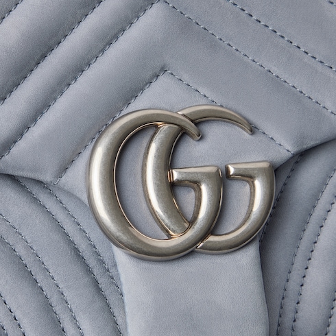คอลเล็กชั่น GG Marmont อันเป็นเอกลักษณ์ของแบรนด์นำเสนอด้วยฮาร์ดแวร์ Double G สายโซ่แบบเหลี่ยมมุม และโครงสร้างอันนุ่มนวลที่ผสานกับหนังที่อ่อนนุ่มเป็นพิเศษ กระเป๋าด้านหลังที่เรียบหรูช่วยมอบฟังก์ชันการใช้งานให้กับกระเป๋าขนาดกลางและใหญ่