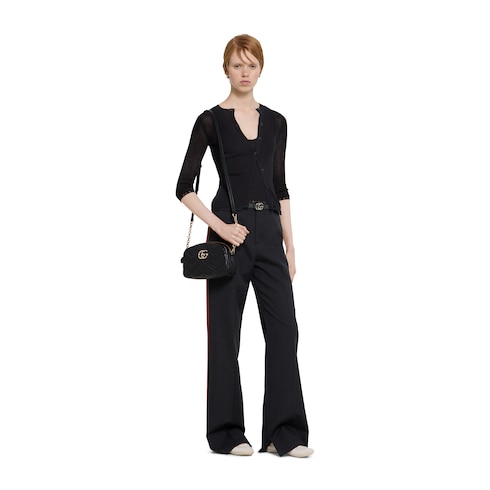 คอลเล็กชั่น GG Marmont อันเป็นเอกลักษณ์ของแบรนด์นำเสนอด้วย Double G อันเป็นเอกลักษณ์ สายโซ่แบบเหลี่ยมมุม และรูปทรงสไตล์ร่วมสมัย กระเป๋าสไตล์แคมเมราโฉมใหม่ใบนี้โดดเด่นด้วยความประณีตด้วยหนังที่อ่อนนุ่มเป็นพิเศษและฮาร์ดแวร์อันประณีตในผิวสัมผัสโทนสีทองอ่อน