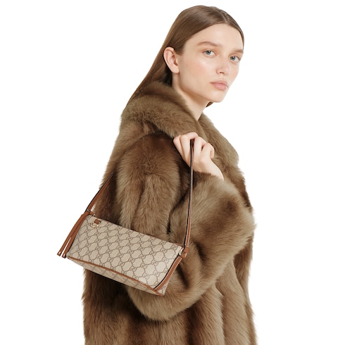 ในคอลเล็กชั่น Fall Winter 2025, กระเป๋าสะพาย GG Emblem ขนาดเล็กใบนี้โดดเด่นด้วยรูปทรงกะทัดรัดและรายละเอียดที่สำคัญ มาพร้อมซิปและโครงสร้างซับในอันเรียบหรู ด้านในประกอบด้วยกระเป๋าแบบแฟลตเพื่อให้จัดระเบียบได้เรียบร้อยขึ้น ส่วนสายสะพายจะมอบความสบายพอดีเมื่อสะพายแนบกับตัว