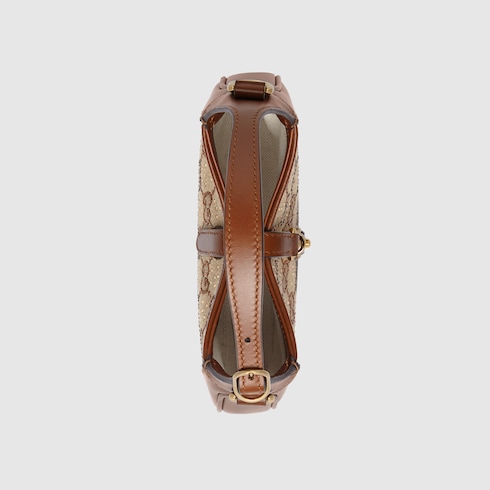 - ผ้าแคนวาส GG สีคาเมลและสีน้ำตาลเข้มประดับคริสตัล