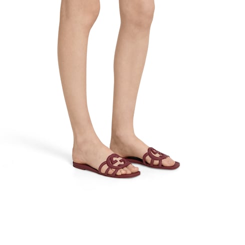 สัญลักษณ์อันเป็นเอกลักษณ์ของแบรนด์และลวดลายอันประณีตผ่านการตีความขึ้นใหม่ในสไตล์ร่วมสมัยสำหรับคอลเล็กชั่น Gucci ล่าสุด รองเท้าแซนเดิลสไลด์คู่นี้เผยโฉมด้วยยางสี Gucci Rosso Ancora Red พร้อมคัตเอาท์ Interlocking G ที่จะเติมเต็มสไตล์ด้วยสัมผัสสัญลักษณ์อันโดดเด่น