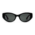 The Cruise 2025 eyewear collection blends a sleek silhouette and signature motifs in a contemporary design. These cat-eye sunglasses feature a Interlocking G detail on the green and red temples.