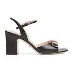 This pair of mid-heel sandals is crafted in soft and refined leather, the signature Horsebit defines the design adding a touch of timeless elegance. The adjustable ankle closure completes the style.