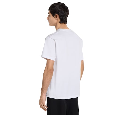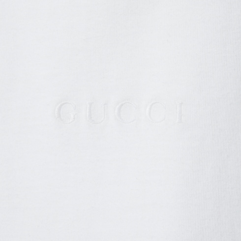 2025早秋系列聚焦基础廓形与经典细节,匠心呈献日常服饰和晚装造型。这款T恤以白色针织棉打造,匠心缀饰Gucci刺绣。